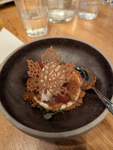 Read morePrachige setting binnen met een wat verstopte ingang. Heerlijk gegeten, mooie balance bij de gerechten, ook heel fijn dat voorgerechten allemaal dezelfde prijs zijn (18 euro) zoals oo en hoofdgerechten (28 euro) en nagerechten (10 euro). Helaas vond ik de bediening bestaande uit een jonge dame die ons bij binnenkomst op zaterdagavond wat koel begroette. Ook aan tafel was zij kortaf en bij het presenteren van de gerechten werd er niet zoals haar collega dat aan de andere tafels wel deed verteld wat er op ons bord lag. Dit verwacht je toch wel bij dit soort restaurants. Ook moesten we naar de wijnkaart vragen, de prijzen van het wijnarrangement wist ze ook niet. Ik had ook nog bij de reservering laten weten dat we hier 17 jaar geleden ook gegeten hadden bij destijds nog Lute en nu weer om onze huwelijksdag te vieren. Met geen woord werd er over gerept. Bij het afrekenen hielp haar collega en toen ik mijn teleurstelling liet blijken gaf hij aan dat hij idd die middag wel iets gelezen had in de mail. Kortom, de tent heeft potentie maar er moet echt wel wat aan het service niveau gebeuren zeker bij een...