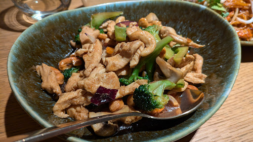 What a great asset for Amstelveen! It's located in a residential area, on the ground floor of a snazzy apartment building. The advantage is that it's easy to park if coming by car, and there is a terrace outside in between buildings (and not on the sidewalk with streets passing by). I had one of the freshest pad thai, reminiscent of my favourite place in Thailand, and favourite Thai resident in the River area of Amsterdam (Kong Kha), I've had since. My husband had a stir-fried duck breast with black mushrooms (Chinese cuisine also uses this one, it's called something with "ears"). The interior is light, tastefully and nicely done, we had a table next to a nice bamboo plant. The wine list is sympathetic, with wines from different regions/countries across a good price spectrum. We had the Kai mix as a starter (really yum crab cakes and super fresh rolls) for two, and dessert: sticky (warm) rice with mango and coconut ice cream - both yum! Service is attentive and welcoming. In short: we will be back and on a sunny day, we plan to come over for lunch or dinner on the...