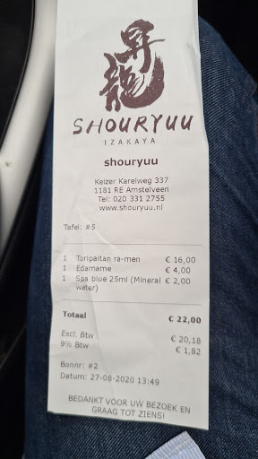 Read moreGreat Japanese restaurant in Amstelveen ⭐⭐⭐⭐⭐ For the beautiful venue. Perfectly clean and well decorated ⭐⭐⭐⭐⭐ For the service. The staff speaks perfect English and everyone friendly. I appreciated that the waiter each time she was coming to serve the table, she was wearing a mask. Also the chef has been wearing the mask all time that was preparing my meal. Great attitude towards the prevention for the covid19 ⭐⭐⭐⭐⭐ To the food, nice and delicious ⭐⭐⭐⭐ For the ratio quality-price. The food is good but 22€ for a chicken ramen 🐔🍜 one little portion of edamame and a bottle of water is a bit too much. I think the ramen could be a little bit more abundant. I found the plate a bit smaller than the average ramen I ate.