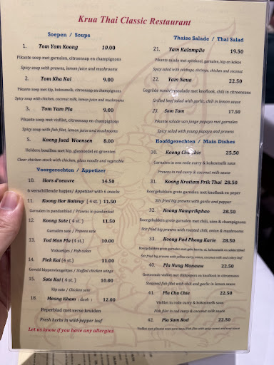 Read moreTo continue in my search to find the best thai restaurant in the Netherlands, I stumbled upon Krua Thai. The place got pretty high ratings, but as I know from earlier experiences, that says nothing. The restaurant itself is decorated in a fairly standard way, and the interior does not really give a warm feeling. Staff was friendly, but also really noisy, because they were talking a lot to each other. The Tom Kha Kai soup was okay but lacked in taste, and the chicken tasted pretty bad. The most surprised I was by the Kaeng Phed Ped (duck in red curry). The duck was really fatty, and the dish included normal eggplant and Italian basil instead of Thai eggplant and basil. When I said this to the waiter, he responded with: it's very difficult to find these ingredients in Amsterdam! Of course, I responded with: No, it isn't difficult. You can buy them in many places in Amsterdam, like Amazing Oriental and Don Yong, to name a few. Really weird to lie about this, and a cheap way to save money on quality ingredients. What's also very weird, I had to pay for the rice besides my main course. First time in all the Thai restaurants I visited that I had to pay for rice. The red wine (Shiraz) was nice. All together, it was a disappointing experience. Another tourist trap in the city center of Amsterdam. If you're searching for a good thai restaurant, I would recommend Sukothai in Amsterdam (yeah, it's pricy, but by far the best thai restaurant in Amsterdam) or Silom thai (modern, but great). Or even better, go to The Hague, Rotterdam, or Deventer. These cities got some amazing thai...