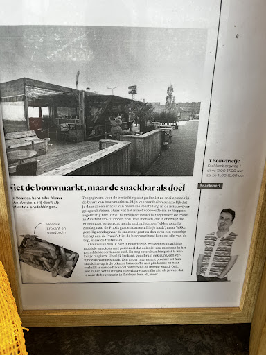 Eindelijk heeft iemand deze geweldig goede frietzaak toegevoegd!! Op een onverwachte plek en met een onverwachte kwaliteit maak je kennis met hun heerlijke top friet. Als frietliefhebber heb ik overal mijn adresjes, deze staat in de top van de lijst en wedijvert met De Frietfabriek, De Frietsteeg en Par Hasard in de regio. Vriendelijke eigenaren (volgens mij een echtpaar met hun (schoon)dochters) die op Amsterdamse wijze deze tent runnen. Echt een topadres en de moeite waard om er voor om te rijden. Nogmaals, je verwacht zulke overheerlijke friet niet voor de ingang van een Praxis maar ga en laat je verrassen! Hieronder een foto van een artikel uit Het Parool over deze top frietenbakker. Als ik al iets als aanbeveling zou willen meegeven dan is het wellicht dat er vegetarische snacks verkocht kunnen gaan worden, bijv...