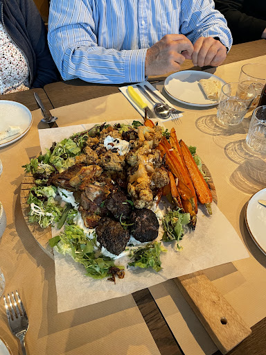 We were seated on a table made for 2 people even though we were 3. When we asked to have more space, the waiter said 'no' even though the place was not nearly full. The starters arrived at the same time a the main course, so by the time we ate them, our plate was cold The food was unseasoned, bland, poorly proportioned and WAY to expensive. You must know that you'll have no side dish included with your plate, you'll have to pay 6.5e (!) for fries on top of the 13.5e for a very small and untasty shakshuka filled with spicy sauce to 'hide' its blandness. Do not order the Hummus too, it'll be serve with only 1 piece of 'bread' (it has another name but I cannot remember it) which will not be enough to finish it. Don't waste time asking the waiter for anything as the answer will be 'No'.