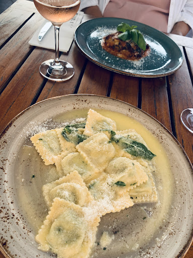I went with my mum as it’s our local area to where we are staying. It had such good reviews and when we walked past it was always busy. We decided to try this restaurant, but on the arrival we were greeted and asked if we had a reservation by a man in a white shirt, we did not and hoped for a table. There were some nice wood tables with some comfy black rattan chairs and he said no over there where the wooden ones with wooden stool were. We had planned to be out for a few hours and enjoy the atmosphere and food so this was a little disappointing. We sat down and we’re brought menus, me and mum picked a nice wine each, the menu is limited but still a good selection. When the waiter came over in the white shirt, he spoke more Italian than English it seemed, mum tried to communicate with him but he seemed really sarcastic to us. We ordered and asked for some bread too, he said it will come. A lot of the dishes we liked were unavailable, the other options given were still good. Looking around we noticed others had the tables laid out and had water, bread etc. we waited patiently and thought it will come.