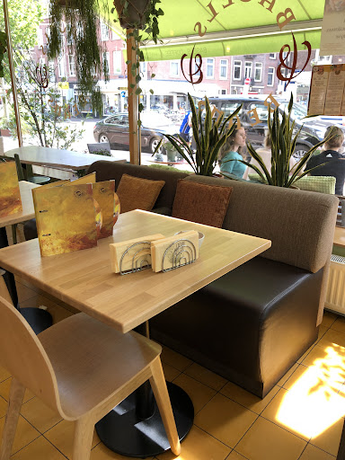 We popped into Bagels & Beans for a quick drink as it was very hot whilst we were walking around Amsterdam. We ordered 2 of the Gele Peter off of the menu which was orange juice with bitter lemon. It took longer than I anticipated for our drinks to arrive considering it was just an orange juice with bitter lemon and it wasnât that busy. The restaurant itself was nice, I wasnât a fan of the drink - I have had orange juice and bitter lemon elsewhere before and it has been much nicer. The food being brought out did look really nice - the bagels looked fresh and the ingredients / fillings also looked fresh. The staff were friendly but like I said previously the service was a bit slow considering we just had a drink. I would possibly go back again for food but I would hope the service was a lot quicker than having to wait 10 minutes again for a juice. Overall it was a nice place with friendly staff, a nice seating area outside which is nice in the good weather, I was however disappointed with the slow service and not the...