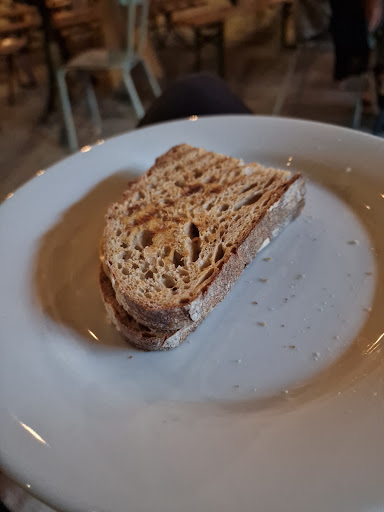 Nice reused locale. I wonder what was here in the past given the typical storage rails along the walls. Expedient service, absolute breath of bread-based options. Tasty cheese and ham sourdough toastie. Delicious baguettes (half). Delicious pastries.