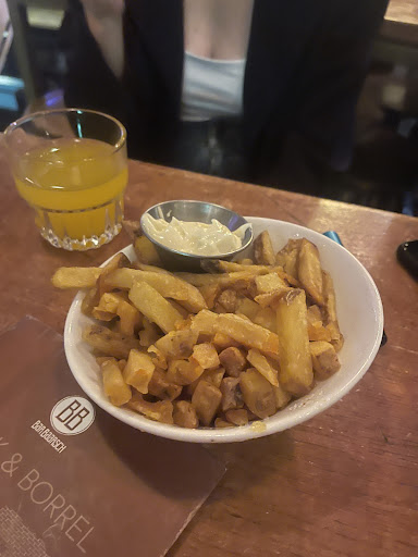 Fries were not nice. Burrata too. Probably was old as inside it was not soft but almost like mozzarella. Lacked salt. Some tomatoes were super hard and other ones were soft. Caesar salad was promising as the sauce was nice and the salad is fresh but poached egg was very raw inside. The egg white was raw and once I cut the poached egg the egg white leaked out all over my salad making croutons and crispy chicken soaking wet. We called for someone to take an order three times. Then the waitress helped us. She was nice and even tried to help us to get a bigger table. She was helpful and friendly. Unfortunately we did not ask for her name. But we found that the amount of staff working on Friday night is not enough as they physically couldn’t take all orders and serve everyone quickly. We were a huge group but we all had problems with ordering. At some point we just went to the bar to get our drinks and there was only one bartender in full bar. The vegetarian platter came missing items listed on the menu which was also frustrating. Half of the menu was...