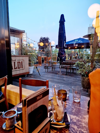 Contemporary nice place with a good heart at the essence of it. I went here with some work colleagues on a Wednesday evening. It seems nothing out of the ordinary to be able to do this, but it is in this (newly built) area of de Zuidas at the RAI/Boelelaan side. Basically it's in the bit of no man's land (it used to consist out of offices only) between the World Trade Centre/Station Zuid side of the Zuidas towards the RAI/Europaboulevard. Bar Valdi however breathes Amsterdam urban coolness, friendliness AND professionalism in running the bar. The normal bar menu consists of proper standard executions of bar bites (proper bitterballen), the special menu (not posted online) consisted out of food made by refugees. This warms my heart. And my tummy, because the shaksuka was out of this world DELICIOUS and the fresh bread with sesame seeds was equally YUMMY. (Think using the bread to soak up the sauce from the shaksuka type of yummy.) And, they have several alcohol-free beer options, which was very handy for me. In short, if you're looking for a nice relaxed place to hang, this could be it. There might be some students about, but the place is big enough outside and inside...