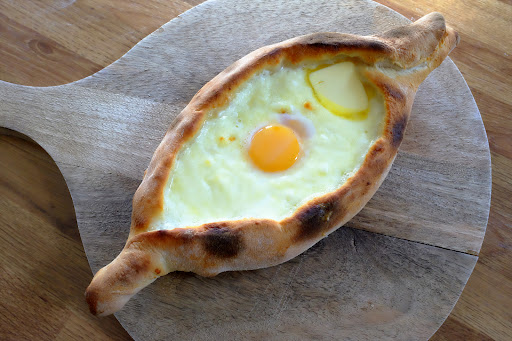 ย ย ย Read moreWe just came back from Russia, where we indulged on some Georgian food, and I craved all the flavors and my boyfriend couldnโt stop dreaming of Khachapuri Adjarian (with egg yolk on top). I have bookmarked this place a while back but yesterday we had the perfect company to venture out to this area to introduce them to Georgian food and enjoy ourselves. We made a reservation at 7pm through Facebook. I was a bit hesitant but when we arrived (Wednesday evening) the restaurant was full and our table waited for us. We ordered the appetizers, all of them, followed by khinkali (mushroom, and beef and pork), khachapuri 2 of those; and mushrooms baked with cheese. The appetizers were good, my favorite was eggplant with the walnut paste and pomegranate seeds. So Georgian! And khinkkali with beef and pork were perfect - the dough was just right, enough bullion in them, and the meat to dough proportion is quite right. Khachapuri was enjoyed by everyone at the table! Of course! So much cheese goodness mixed with the egg yolk that we had to fight for the remaining piece! I did not enjoy the mushroom clay plate - that dish came out watery. We had two bottles of Saperavi - red Georgian wine. I enjoyed the first bottle more as it was aged differently (by traditional Georgian technology - in a huge clay containers) Service was quick and friendly. The guy took care of us with a smile and did not mess up anything. I wish this place will expand the menu soon to include more Georgian food on the menu. Nonetheless the current offerings of khinkali, Khachapuri and appetizers were perfect. All and all - dinner...