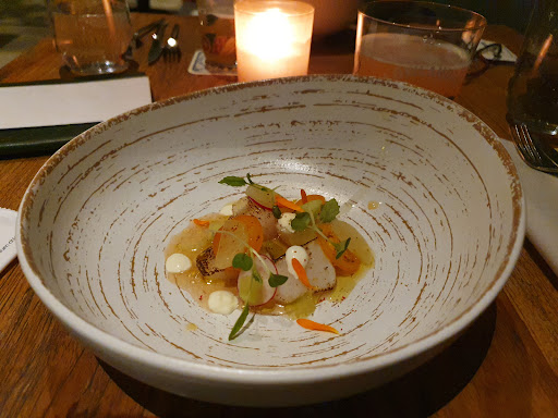 Open kitchen, clever, usable and pleasant design of the spaces, staff that manages to combine high-end communication choices with cosy and relaxed attitude. We were given the real (again rarity) opportunity to taste wines before choosing one. Our host was ready to advise, offer, assist, and even listen to our needs. Clap-clap for the last one - I already got traumatized by Amsterdam dining sphere where listening happens only when you shout people in the back and your hand gets numb from waiving to a waiter.