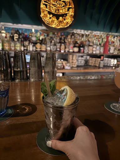 Read moreThe idea is good. There is no clear sign of the place. The entree is kinda messy with the limit amount and cramped tables blocking a bit the entree. When you enter it does give you a nice vibe of going somewhere mysterious. Would be great if they can make it like a wardrobe and will be nice if they can give more show like welcome drink, full kitchen operating, just showing off their bottle storage collection or a special effect of entering the belly of the beast because it seems the theme is not fully pushing through got me a bit background. The service is good and fast. The food is really like a bar food type what you get in US but sizes are more like starter size what you get in restaurant taste is oke for some and some not really that great. Great disappointment is really the smash burger got a feeling mcdonald a bit cold like the bread and good size fries. The simple cheese cake is really simple and nothing special. Such a pitty. The cocktails are OK as their prices are fair but I need to say they could step up a bit more compare what happening upstairs.