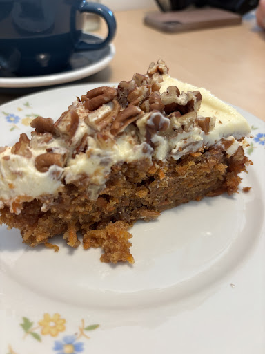 Coffee & cake, plus breakfast staples, in a chic, plant-filled space with pale wood interiors.