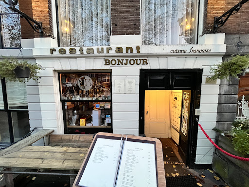 A true find! Ordered the 3-course, prix-fixe menu described outside. You have to ask for it specifically once seated. Had the artichokes and mushrooms appetizer baked with a small amount of mozzarella that did NOT overwhelm the taste of the vegetables. My main course was the salmon surrounded by very fresh vegetables. Dessert included; could choose from dame blanche, chocolate mousse, crème brûlée or tiramisu. Everything was delicious, excellent and very carefully prepared. The salmon was baked until it had a light brown crust but was cooked on a bed of very fresh zucchini, keeping the salmon delicious and moist. I’m going to try that at home. Lots of vegetarian dishes, cooked perfectly, not just a lumpy after thought. I left at about 7 PM to get to the ballet, about 5 minutes away. Place was packed with people who were very clearly local, so this bistro is clearly - & deservedly - well-known. Staff was friendly, helpful and a pleasure to deal with, even when the restaurant was full. I highly recommend Bistro Bonjour and will definitely eat there again. Only open for dinner, 7...