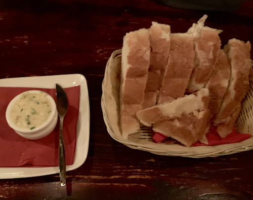 Read moreIt is a cozy, warm restaurant. The bread delivered to the table is crispy and tasty. The butter served with it is full of garlic - yum! We started with the French onion soup. The broth had plenty of flavor and the soup was nice and very hot (thank you!). I could have used more of the tasty little croutons that was on top of the soup. I went with the farmers salad which was full of crispy cucumbers, tomatoes, salty feta, black olives, and some greens. A very fresh and flavorful salad. The bruschetta was also full of garlic, olive oil, and basil flavor. And I like the crispy toasts. The shrimp entree was large and delicious. The shrimp were tender and had so much garlic and butter. Wow. The shrimp came with a baked potato (with some delicious sour cream on it), a salad, broccoli, and some hot and crispy French fries. Pretty great entree. We finished with some profiteroles. The cream puffs were crispy and the chocolate sauce not too sweet. Overall it was a...