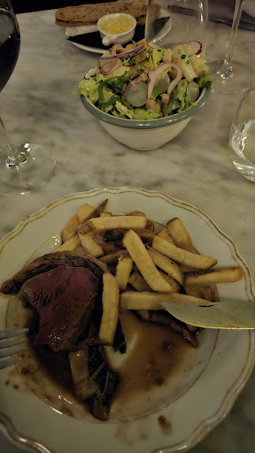 Edit - 2nd review: I went for another time and had my wife and kids with me. As they were in a rush for the table we took mains only. First glass of champagne came in a broken glass. Then the waiter forgot me and I grabbed 2nd glass myself from the bar which was old and not enjoyable - no bubbles and slight vinegar taste. At least it was on house but i rather pay and get a quality drink. We took the Cote de Boeuf for 3 which in terms of meat quality was a total disappointment and almost a joke. The meat was of very very poor quality (full of fat/tendons and gum-like consistency - see photo) and not cooked to the desired grade (med rare instead of med) and there were 2 portion of fries with it although I ordered for 3. I went with the whole lobster which was a bit on the dry side but fresh and ok/eatable. I was a returning guest since my office building is around the corner but will rethink this. I am really super disappointed… The waiter who served us and the chef/kitchen should really feel ashamed serving us such "food".