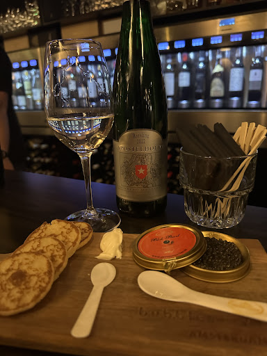 UPDATED: been here like 20 times since my initial review and still good. Amaze playlist, new and expanded snack menu (still the best bitterballen in Amsterdam), and a nice rotation of wines so you can always try something new. Snacks that I love are the caviar (pictures), but the bitterballen served with truffle mayo as well as the Parmesan “bee stings” are really delicious. A good atmosphere where you’re attended too but not overly...
