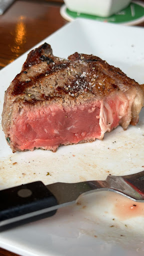 We were a group of 5 and went there to eat steaks. We ordered steaks, fries and a mixed meat plate. As the food arrived and we sliced it, we noticed that the cooking point was not even close to what we ordered. The meat (which we ordered as medium done) wasn’t just bloody, it was raw and that not just in the middle. Speaking of, the middle of the steak was still cold. Around the steaks there were big fat slices, partly centimeters thick. We also didn’t get fries, we got potato wedges. The sauce we bought as a side was okay. As we wanted to pay he was trying to convince us to pay with cash. We insisted on paying with card and that was the point where our waiter’s mood changed and the service which was okay till that point got bad. We got a bill and asked to split it. He just told us to say what we „want to pay“. We had to calculate what our food actually had cost per person ourselves. As it came to paying he also told us that the „service was not included“. When we didn’t tip as much as he expected his mood got even worse and he went inside without saying anything. The restaurant itself looked quite nice. All in all: I know, taste may vary but I wouldn’t recommend to go there. (Steak in the picture was...