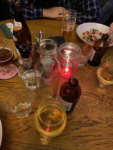 Went with a friend to see a comedy show in the basement. I had a can of cola, my friend had a beer and a pizza which she said was very nice although very spicy. Unfortunately couldn't see any gluten free options so didn't get anything myself as I am coeliac, but that is expected most places I go so no fault of this place specifically. The place has a small unsheltered smoking area out the front with ashtrays, the restaurant itself is very cute and chill, the toilets were clean and were at the bottom of the stairs so not sure if they'd be accessible for wheelchair users, maybe there's another toilet upstairs that I didn't see. You go through a few seemingly random rooms downstairs before reaching the room your show is in (if you're there to see a show) including what looks like a children's play area and a sort of old fashioned living room, and the decor is somewhat strange and confusing throughout (puzzle on the wall, mannequin in the corner, etc) but gives the place an interesting and quirky atmosphere making the experience all the more memorable. The show we saw was My Therapist Is Ukrainian and we enjoyed it very much, also the warm-up comedian was very funny too. The place is very easy to get to with public transport from Centraal Station. Overall I enjoyed it a lot and would be happy...