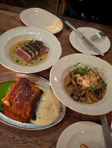 Lasagna and mushrooms for starters were nice, tuna was mediocre. We waited 1hr between starters and mains, and were even asked to move to either the bar or outside because our reservation slot was ending... Even before we received our mains. They announced our timeslot when we were sat down, but I think it's unreasonable and inhospitable to ask us to change places if your own pacing is off. We didn't even receive an apology.