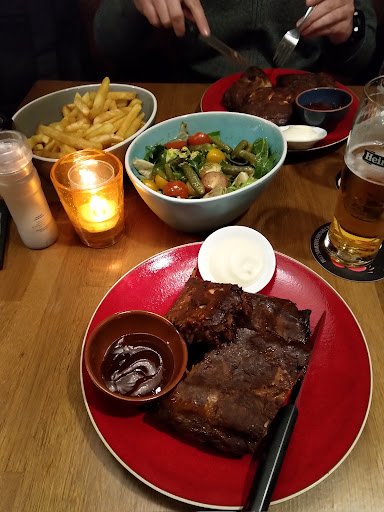 Then we wait 65 minutes for our main. There were 3 options: Chicken skewers, hamburger and vegetarian hamburger. Then a surrealistic situation happened. Our colleague with allergy issues got a dish With Onions. He couldn't eat it. He separate the onions and put the pieces around the plate. I observed the waitresses, all 3 of them came in turns to our table to pick up something or to check and it was not possible they didn't see the dish untouched. What a good waiter or waitress would say in this situation? : something like "is all OK, or is it something wrong with the dish? Remember that it is about the experience and the friendliness to be sure that your customers are enjoying their time at your place. Later, when the waitresses were told about this, they offered to take it out of the bill. And not apologise was offered to my colleague. Another colleague is vegan. She asked for the vegetarian hamburger without cheese. When the main dishes arrived there was one chicken skewers left and my colleague had no hamburger. Our waitress (the same who didnt know about what soup they served) said, I am sorry but someone took your hamburger. She blamed the table. We all checked our hamburger and said all have cheese. And she said: ah, if you dont want cheese just take it out of the bread and put it aside on the plate. Really? The bread of the hamburgers. I suspect they did the same as with the salad. Food on the plate, reserved and serve it all together. What happen with the bread with you try to keep it warm? well the bread cover gets hard. It was not hard as a rock but it was hard and I could even tap on the top.