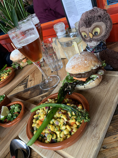 Vegane, gluten-free food possible .. no mainstream food in a artistic non mainstream athmosphere.. For meat eaters conscious options are on the menu.. tried the insect burger- liked it .. unfortunately I had a strong allergic reaction (heavy breathing, red itchy skin) for one of the food components ( first time in my life) .. doc said it was either Soja or lupins in combination with my early blossoming trees sensitivity -so take care as it really spoils fun to go to docs after nice food .. beer is great ..