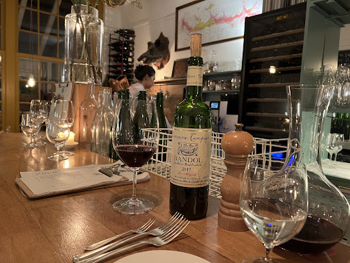 The food. Well, unfortunately our expectation was not met. It was just ok, despite the pretentious French names on the menu and the fairly high for cost for little achievement and enjoyment. Very modest portions, not attractively presented but just chucked onto a wooden board, it seemed. No dishes are provided by the staff, so customers are apparently supposed to put the bread, butter, jambon and rillettes on the table. The wine glasses and table cloth weren't clean, by the way. It's a detail but still important. It's a tiny place, crowded and stuffy, which isn't the fault of the staff, of course. But it drags the whole disappointing experience even further down, as it gets very loud. You can't even understand your table companions. For us, this was the most disappointing 'dinner' experience during our travels through Europe. I do admit that we have very high expectations, so we blame ourself for thinking that these would be fulfilled here....
