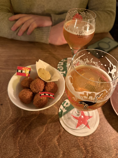 Read moreRan into this place out of the rain, atmosphere looked really nice, which it was! We enjoyed the liveliness and vibe. We stuck to starters because we wanted to try some Dutch snacks. The bitterballen (in photo) were delish! We were confused by the spring rolls but maybe that’s a thing? We also had kaastengels (cheese filled sticks) that were tasty but would’ve liked more of those. Had some local Dutch beers that were tasty. We did have to specifically ask for silverware and napkins after being served which we thought was interesting. The service wasn’t great, but everyone was kind. Solid spot to pop into for...