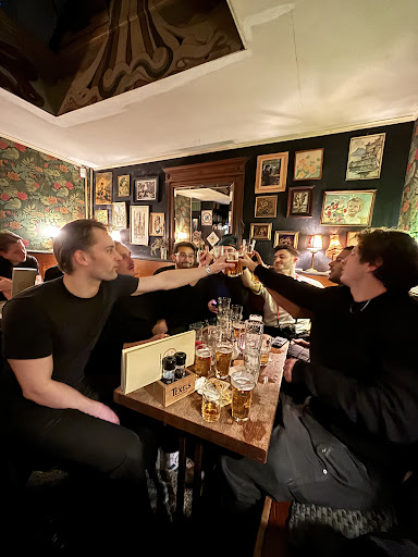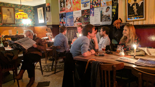 Read moreAccording to our little Lonely Planet guide book, this is one of the larger brown cafes in Amsterdam. The others must be quite small! We were able to find seats in the back corner, which was lucky since the place was quite full. The atmosphere was pleasant, and it was nice to have a skylight in the back area on a rainy day. I went to the bar to order, but the server kindly came back with me to the table to explain what beers were available. We ordered some bitterballen and spring rolls. If you've never had bitterballen, they are deep-fried crusty on the outside with gravy containing bits of meat on the inside. It's always worth trying something once, but we won't have them again. The beer was good. I had to hunt down someone to pay since the fellow who helped us originally was no...