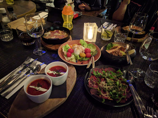 Read moreWe went there for a company dinner with a pub quiz. Very poor choice from the side of the PubQuiz organisers to choose this place to work with. Very loud music and low lighting doesn't help when you're trying to play a round of pub quiz. Now as for the actual restaurant. The food was nothing special, we started with a stale flatbread and two tiny spreads and then on to the burgers. For most of us arrived cold and the burger was actually rock hard. There was a good amount of a blueberry (or some kind) of marmalade on it probably to cover the taste. The dessert was a tiny chocolate mousse very dense and overly sweet. The worst part was the service though. The head waiter and the other stuff were in a hurry to serve us and get rid of us. No personal touch, no willingness to give us a pleasurable experience. Plus the portions on the wines they were serving us were unequal and when we asked about it they simply said that some red wines they pour more than others, which has no logic whatsoever. I wouldn't recommend it to my enemies and I would definitely never...