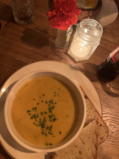 Read moreFive corners with narrow streets, each with a restaurant and this one gives out onto a street terrace. Inside, limited seating requires you to call ahead but no restrictions on the menu which includes two daily specials. We tried both and were not disappointed, followed by that great Dutch Apple pie/cake/whatever baked on premise. Did I mention the unusual...