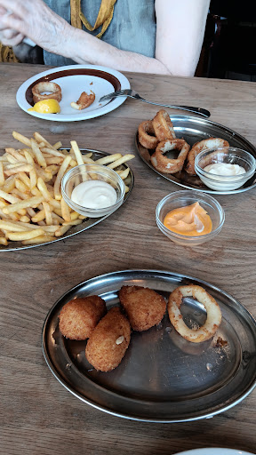Read moreSo much potential to be a great spot with the nice outdoor seating but sadly the service is just really slow and has a bad attitude. Food was decent but waaay overpriced. The fact that a steak for 52€ doesn’t come with any sides says enough. And no, it was not a huge steak. It was okay though, not the most tender but seasoned and cooked nicely. The calamari were seasoned nicely too, albeit also overcooked. Mussels were super tasty and the standout dish. But again, some bread on the side would have been nice. We asked for bread and it came 20 min after we had finished with the mussels. For me the piri piri chicken was a huge letdown, nearly no spice, no seasoning. It was just really bland. The patatas bravas were okay for fried potatoes, but patatas bravas are served with aioli and a homemade hot sauce and we had neither - so it was basically a small portion of fried potatoes for 7€.