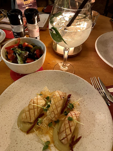 Wat betreft de sfeer, "Kosmos" heeft een levendige en bruisende uitstraling. Het interieur is modern en de inrichting heeft een eigentijdse uitstraling. De muziek speelde op een aangenaam volume en droeg bij aan de algehele ambiance. Het personeel was over het algemeen attent, hoewel het op sommige momenten wat druk leek. Niettemin slaagden ze erin om een goede service te bieden en waren ze bereid om aan onze verzoeken te voldoen.