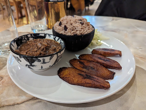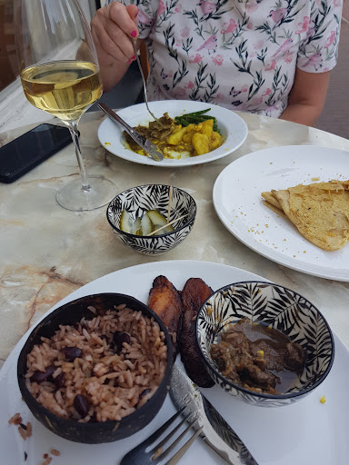 This place is a gem. The decor is relaxed but stylish. It really feels like a little Caribbean bar was moved whole to Amsterdam. We had the Jerk Chicken and the Tilapia. Portions are modest but the prices are also very reasonable. The food was very very tasty. The chicken was juicy, flavorful and crispy on the outside. Perfection. I don't know what spices they added to the rice with beans, but I intend to find out because it was so good and felt very light. To top it off, the people working there were extremely nice. The only point for improvement was the desert. We had some pudding with raisins, and it was tasty, but the texture was a bit too liquid. A bit thicker would have been better. This place just move to the top of my list for a deliciius, reasonably priced mean in a...