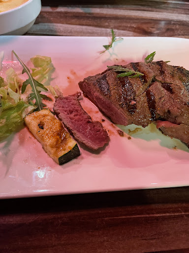 The food was great. The meat was cooked perfectly. We ordered two meat dishes for 30 euros each. The portions were good. The cocktails were below average. I think it’s better to remove cocktails from the menu if you don’t have a professional bartender. The waitress (with dark hair) was very welcoming and friendly. She did her best to serve us well and make us feel welcome. The manager or the owner with curly hair seemed very strange to us. Was standing outside and smoking or drinking coffee. Couldn’t see him helping the staff although the restaurant was fully packed and understaffed. People were waiting for their food for a long time. Usually I would give one star less for service but I know what horeca is going through. All hotels and restaurants are understaffed. The waitresses (also the young girl with blonde hair) were very nice and friendly but the manager really surprised us and with his chill walking around and smoking. We asked for drinks menu and then he came and took it from us even without asking what we want to order. When he brought the receipt he asked us to check if it’s correct and if everything is ok for...