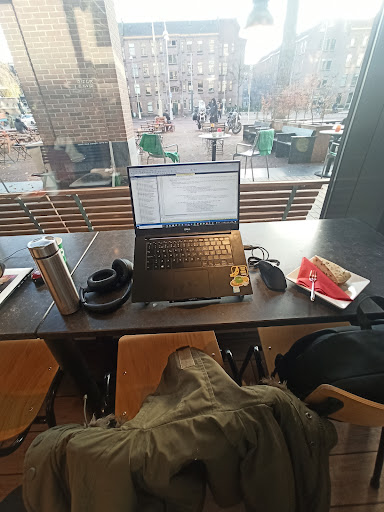 So it can be busy, sometimes unable to find a spot for your laptop, sometimes a bit too much noise. But I always wait a bit with a coffee, there will soon be space freed up.