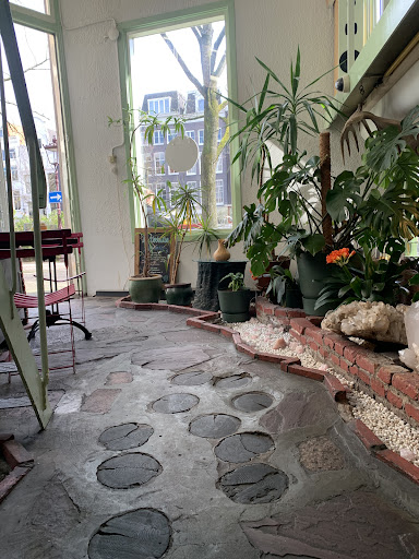 Resembling a botanical greenhouse, the interior is shrouded with plants. Continuing the voyage of discovery, there are large crystals and meteorites, creating a mystical ambience in a calm, peaceful and relaxing atmosphere.The coffee shop has three levels. Upstairs is an internal balcony area offering a great view of the premises and the canal beyond. There is seating at the entrance level and, when the weather is warm, a small outside terrace on either side of the building. The 'dispensary' is on the lower ground floor, where you can order tea, coffee, freshly squeezed juice, ice cream milkshakes, snacks and sandwiches. They also do a wicked weed brownie.