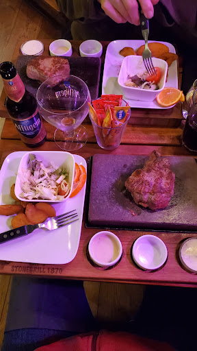 We visited Day Stonegrill 1870 as a couple and ordered two striploin steaks with fries and pepper sauce. The concept of cooking the steak yourself on a hot stone worked well ā and the meat itself was okay, not bad but nothing special. The sides were disappointing: the āfriesā turned out to be potato wedges, and the vegetables were clearly frozen, lacking both taste and texture.
