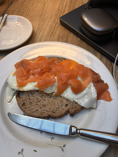 Read moreThe vibe is very cozy and inviting food is okay.. as for the service some of the team was very friendly and nice and some didnât understand much about customer service.. I ordered cappuccino and a egg and salmon breakfast, the coffee was nice, the food was disappointing. Just 2 pieces of bread with two eggs and smoked salmon. I asked the waiter for some kind of cheese or souce since itâs very dry and I canât even eat it. She gave me a really wired solution like ketchup.. and she called the manager to come and I asked for maybe cheese usually this dish served with cream cheese. He was not very nice with his answer.. said this is what you order. In the end of the day they came back with cheese but they could do it and check with the kitchen instead of making me feel uncomfortable. And I recommend them to add some kind of cheese or other kind of sauce to the dish since otherwise it is very dry and not something that...