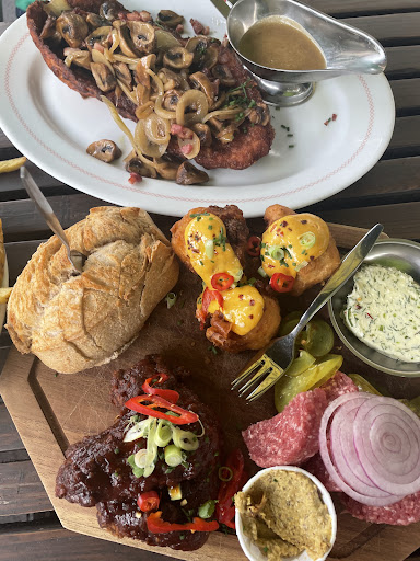 Read moreVery friendly staff. Nice space with large tables. Wide selection of beers. I tried the Beef Bun burger. I comes with 2 thin patties, lettuce, a thick slice of pork belly and a black beans sauce. To be honest, I didn't love the combination of the black beans sauce with the beef. However, I loved the combination of pork belly and beans sauce. That is available as a main course, too. Next time I'll probably get that. My girlfriend had the schnitzel. It was great, both in...