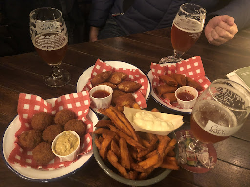 We ordered some deep fried snacks next to our beers. This snacks like bitterballen, onion rings, cheese fingers etc. should always come crispy and hot, however that wasn't the case here: What we got was a lukewarm snacks which here still row from the inside and should have never been served to no one in the first place because it is really dangerous. Coming from the restaurants and hospitality business I can indicate that the oil that they use to deep fry those snacks wasn't obviously even close to the right temperature it should have been and most probably wasn't replaced for a long time either... Stay away or at least don't dare to order any food in this place unless you like...