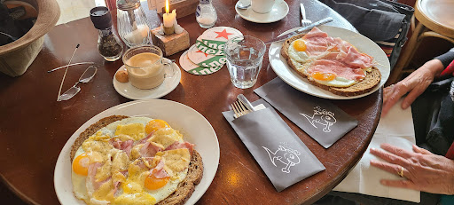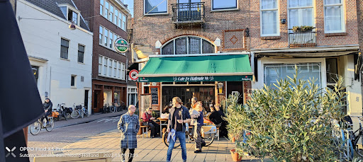 Read moreDopo una passeggiata in un quartiere pieno zeppo di negozi di design non c'è niente di meglio che rifocillarsi in questo piccolo locale sull'angolo dall'atmosfera calda ed accogliente. E' aperto per colazione pranzo e cena e vi servirà un buon pasto anche se piombate li alle 4 del pomeriggio. Tavoli in legno e vista sulla strada, il "Pesce che abbaia" è una splendida locanda come poche al giorno d'oggi. Consiglio di sedersi sul soppalco che gode una splendida vista sulla strada, tranquilla e per niente rumorosa. Gestita da simpatici giovani offre una scelta tra diversi panini e zuppe; i primi sono la loro specialità, sono preparati secondo i gusti nordici con interessanti accostamenti, ed è possibile scegliere il pane (bianco o integrale). Ogni giorno viene preparato un panino del giorno, esposto sulle lavagne del locale, che consiste in un sandwich non incluso nel menù. Il personale parla perfettamente inglese e sono presenti menù in tale lingua, nel caso non si padroneggiasse l'olandese. I prezzi sono davvero sbalorditivi, due panini, due dolci, due birre e un caffé a soli 20 euro!