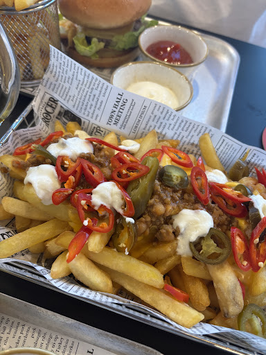 In the end we decided to order beer to drink, nachos con carne as an appetizer and a burger as a main dish.