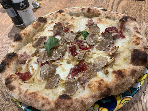 The food was nice—we enjoyed a pizza and were finishing up our first round of drinks. We wanted to order a second round, but the waiter seemed to be avoiding us. When I tried to get his attention again, he responded, "I noticed," without even glancing our way. We initially brushed this off, assuming it was just a busy moment.