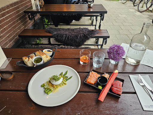 Read moreWelcome to an amazing little restaurant, Eetcafe Schotsheuvel, which serves sashimi, grilled asparagus with poached egg, a delightful negroni, and real dutch chips that are just right. The restaurant is in expat territory so you'll hear many languages. For me two vibrant Americans were chatting about life, jobs, and alike and as being american I wouldn't call it ease dropping as much as observing and enjoying the daily banter. We kindly sent each other a round of drinks, a simple hello and a new story for our journal. She hailed from Miami through New York and he reminded me of an old friend. The atmosphere is warm an inviting feeling like you stepped into a romance novel. Then there's the food. I'd recommend it all so just pick what peaks your interest, start with a few items, sit back and...