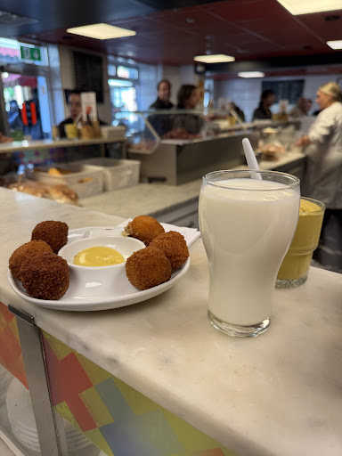 Read moreShould come with a warning: expect service only if you’re Dutch and never mind the poor hygiene .Was recommended to come here to try the traditional Dutch comfort food. The croquettes and bun with mustard were excellent, flavourful and so soft. BUT the service was terrible and cleanliness shocking. Sat right at the front and flagged no fewer than 4 members of staff for service but they kept ignoring us as new Dutch customers walked in, so kept being told to wait. When we were served, I was surprised to see everyone handling food with their bare hands, wiping on their aprons, then handling cash, scratching their faces, wiping their nose, then back to handling food! Didn’t finish my croquette bun and my travel buddy ordered the vegetarian option which sat at the pass being ignored until 2 members handled it, bare handed like everything else, onto a plate, then somehow dropped it on the counter and it crumpled into bits. Without hesitating she shoved it onto the bun again and put it in front of us. Of course we refused it and asked for the bill, which took forever to get paid because all the staff were rushing around dealing with more new Dutch customers who walked in. So in conclusion, if you don’t speak Dutch be ready to scream to get someone’s attention to take your order, wait forever to get it taken and then watch the filthy way they plate things up. Overall awful, not worth it even if the food is...