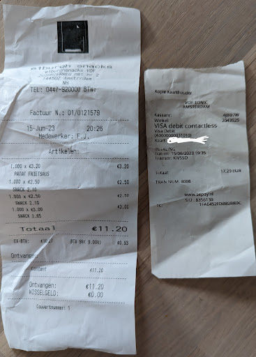 the old guy made me pay 6€ more than the receipt said. When I noticed that and asked him for the right receipt he said "yea, that's the wrong one" but refused to give me the right one urging me to look for it IN THE BIN. It was just a random receipt. He also couldn't replicate the sum I actually paid. That was fishy. He was...