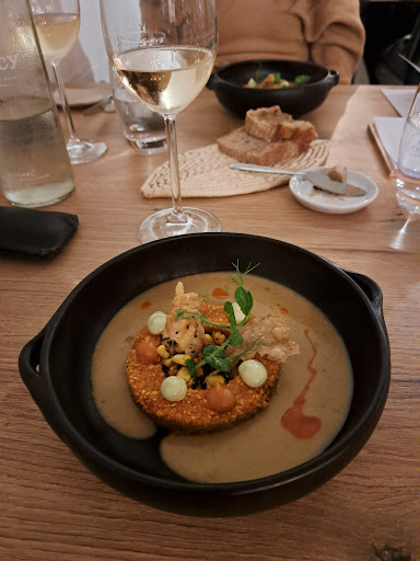 🧑🍳 service -.erg vriendelijk en duidelijk een passie voor het vak en deze zaak. Toen wij er waren werd het restaurant gerund door slechts twee dames, waarvan een voornamelijk in de keuken stond en de ander de bediening aan tafel deed. Elk gerecht en wijn kreeg een goede uitleg. De sfeer was informeel en gemoedelijk. De service was helaas niet 100% consistent; aan het einde van de avond hebben we ineens lang moeten wachten op het kunnen bestellen van nog een koffie en daarna het kunnen vragen van de rekening. Dat terwijl het niet héél druk was.