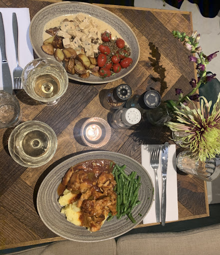 For those not counting calories, the dessert menu offers tiramisu, carrot cake, lemon meringue pie, pear or lemon pie. Wash down with coffee, fruit juices and a great choice of beers.