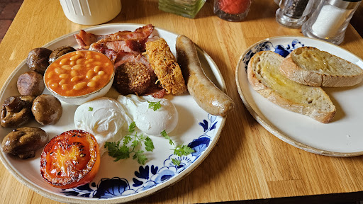 I've been to this location twice, once in October 2023 and today. I like to have a good, not very healthy but who cares, a Full English Breakfast, with a cappuccino. You can see what I've got in October on the left side and what I got today on the right side (toast was served later, but only 1 slice unfortunately)