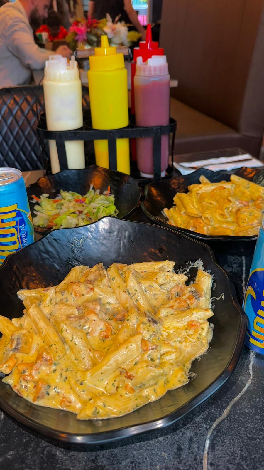Mijn burger kwam daarna als eerste en heb ik maar in mijn eentje opgegeten. Pas 20 minuten later kreeg mijn tafelgenoot haar pasta. We hebben dus niet samen kunnen eten, wat het hele dinergevoel onderuit haalde.