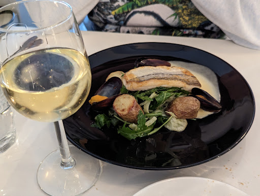 For the main ciurse I chose the pan fried Atlantic hake fillet with mussel saffron sauce, roseval, roseval chips and marinated radish. My wife went with the grilled lamb steak with horseradish gravy, parsley root puree, roasted parsley root and young carrots. The mussels suace really enhanced the flavor of the hake and was also nice to dip the accompanying new potatoes in as well. The lamb was a perfect medium rare and melted in our mouths.